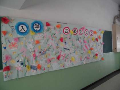 入学式にむけてこのような飾りがついています!新1年生にむけて「入学おめでとう」のメッセージや飾りつけをしたものです☆一度見てくださいね☆