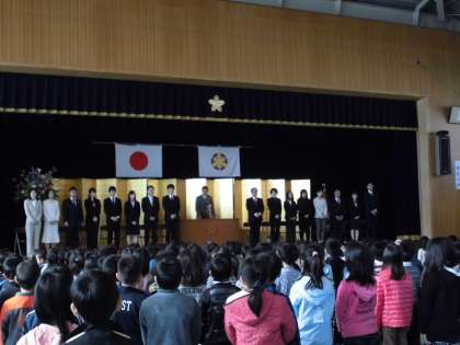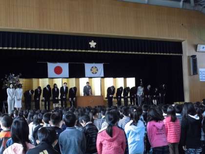 4月8日(月)着任式がおこなわれました!13名の先生方が移動になりましたが,新しく16名の先生が赴任されました。今日から皆さんよろしくお願いします☆