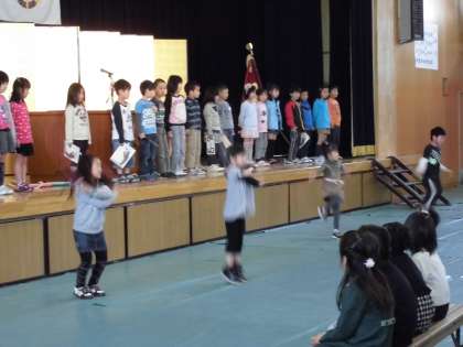 なわとび,計算,音読,昔遊びなど体を使って紹介してくれたので1年生も楽しくみられりことができました☆