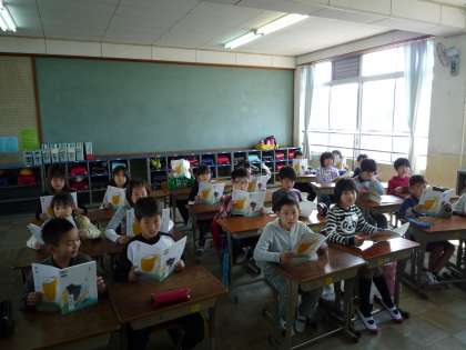 4年生になって初めての国語の学習は『詩を楽しもう』です!「春のうた」という詩を読みました。同じ言葉が何度も出てくることに気付くと,「この時のかえるはどういう気持ちだったのかな?」「嬉しい発見やし大きめの声がいいかも!」「ここは安心の"ほっ"かも!」など色んな読み方の工夫が聞こえてきました!春のあたたかさを感じられる素敵な詩に触れ,みんなの様子もあたたかい雰囲気につつまれていました!