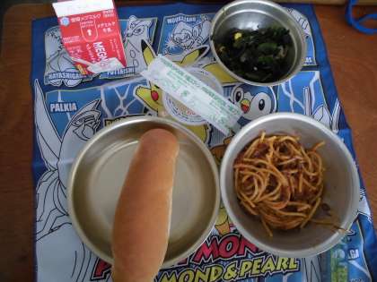 今年度初めての給食でした☆スバゲティー,ソテーがでました☆本当に美味しそうに食べていました♪