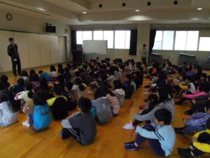 5年生の学年目標などについて学年で集まって話をしました。