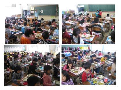 1年生はどうかな?と心配していましたが,展示食を見て「おいしそう!」,教室に入っても「おいしい」「だいすき」とパクパク食べていました。