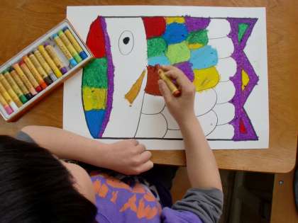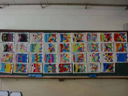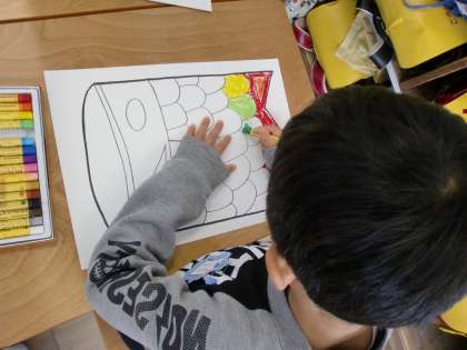 子どもの日に向けて「こいのぼり」を作りました。出来上がった素敵なこいのぼりは,教室に飾る予定です。