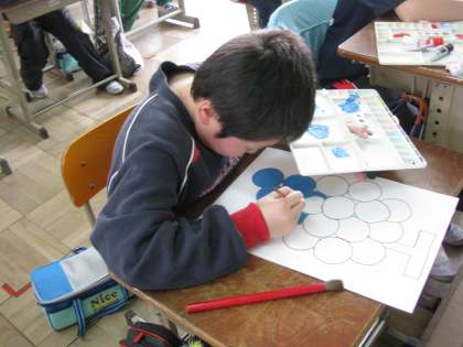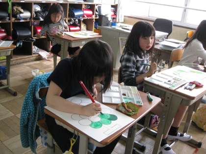 4年生は図工の時間に,絵の具を使ってぶどうの絵をかきました。