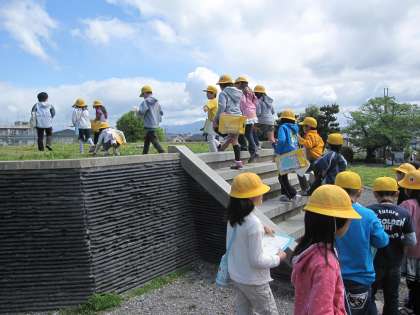 子どもたちが大好きな史跡公園では,高台から京都市を眺めたり,タンポポを見つけたりすることができました。