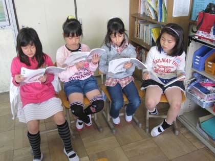 一人ずつ読むところ,二人で読むところ,グループ全員で読むところなど,みんなで分担しながら読んでいます。