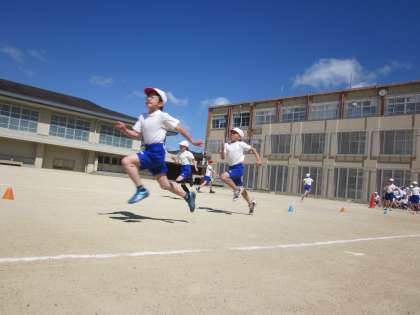 互いに「頑張れー」「ファイト!」といった声掛けをする姿が見られ,1時間目にもかかわらず,熱が入っていました。