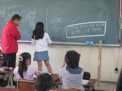 最初はとまどう児童が多かったものの,計算問題を何度も解くことで,ようやく筆算に慣れてきたようです。