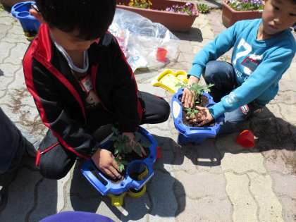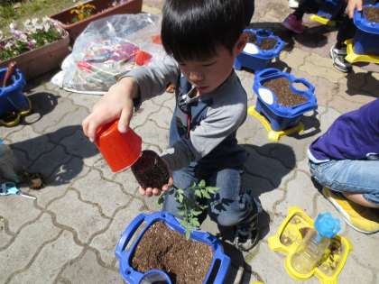 ミニトマトの苗を植えたよ!