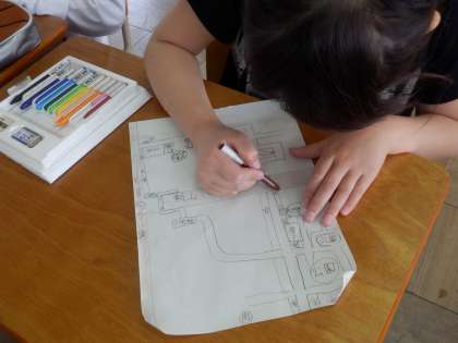 来週は,校区探検3回分の地図を合わせて大きな地図を作る予定です。