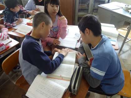 国語では,修学旅行と関連して「平和について考える」を学習しています。内容を勉強する前にわからない語句を調べました。
