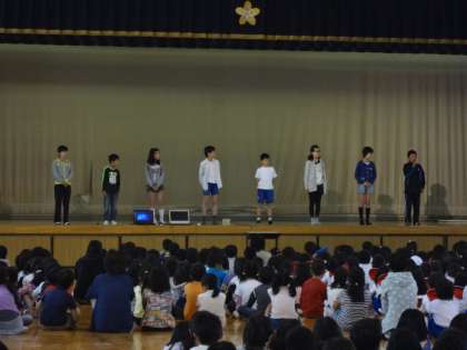 朝会で児童会のメンバー紹介がありました。