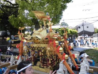 今日は子ども神輿でした。188人の子どもたちが順番交替で「わっしょい」と声をかけあって運んでいました。