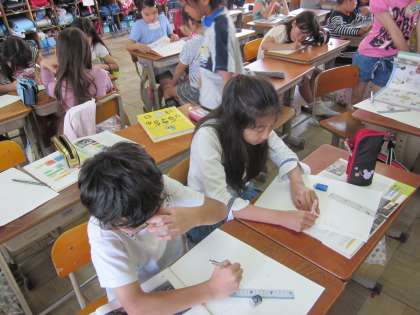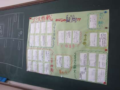リサイクルや,ゴミの種類・量,ゴミの集め方など,各自でテーマを決めて調べました。これを最終的に新聞にまとめます。