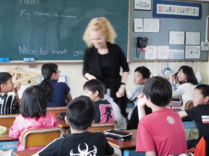 外国語の授業では,リンジー先生がネイティヴな英語を教えてくれ,楽しく学ぶことができます。