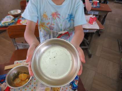 子ども達は,「こんなにきれいに食べたよ」と見せてくれました。