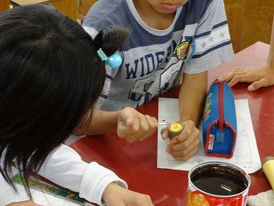 緊張しながら実験していました。