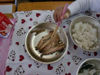今日のサンマは骨まで軟らかく,全部の骨をよく噛んで