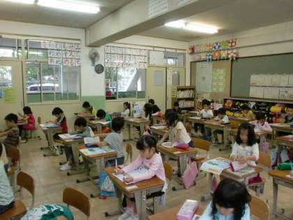 座席を離してテストの約束を聞いて,ちょっぴり緊張している様子。