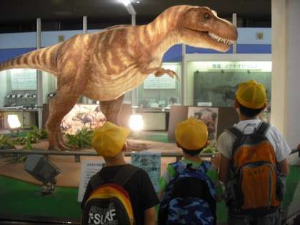 西京東支部の友達と一緒に観光バスに乗り,ちょっとした旅行気分で科学センターへ理科の勉強に行きました。迎えてくれた大きな恐竜にあいさつしたあと,いざ屋外へ。アカハライモリやヤドカリとの触れ合いを楽しました。そのあと展示室で不思議な鏡に自分の姿を映したり,高学年は実験室でおもちゃ作りに取り組んだりしました。最後はプラネタリウムで京都の夜空に浮かぶたくさんの星を眺めました☆とても楽しい科学センター学習でした。