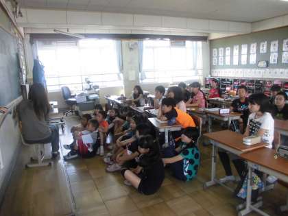 あじさい読書週間では,学年1冊の本を読み聞かせをしています。