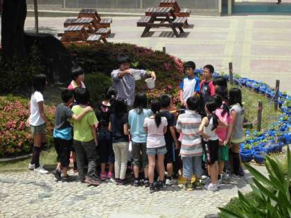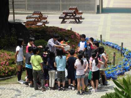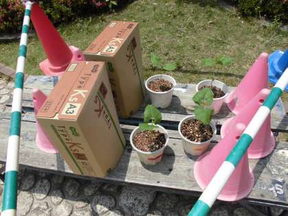 5年生の理科の授業では,インゲンマメの成長を観察しています。中庭で日光が関係するのか,肥料が関係するのか成長するのにどんな条件が必要なのか考えて実験しています☆