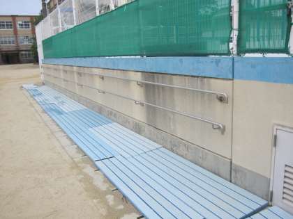 昨年度はずれていたプール横のバスタオルかけは,修繕しました。今年は,端の方までかけることができます。
