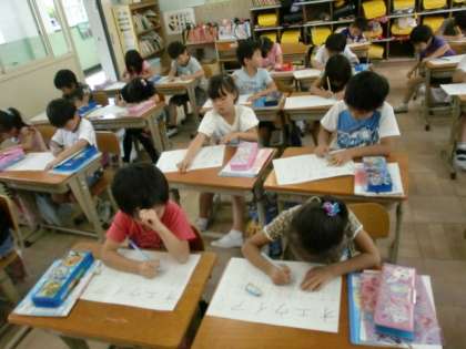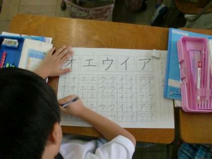 ひらがなと同じように筆順も正しく書けるように注意しています。