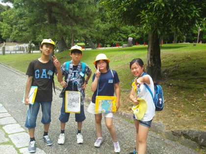 昼食後,オリエンテーリングを行いました。歴史的な場所を巡りました。ポイントでは,先生にサインをもらいました。