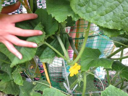 「先生大変!キュウリの赤ちゃんもこんなにできてるで〜}