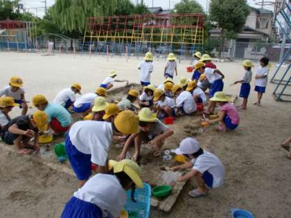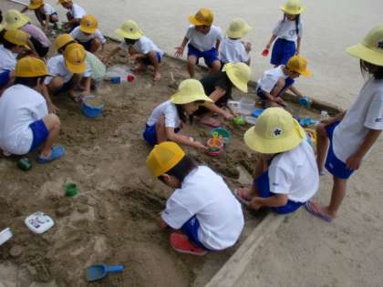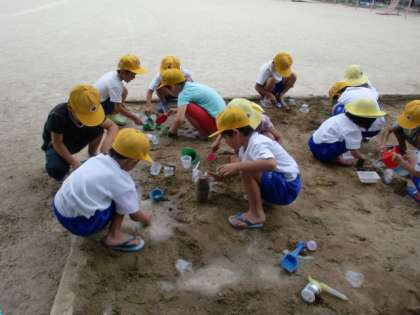 造形砂場で山や川をつくったり,ケーキやプリンをつくりました。