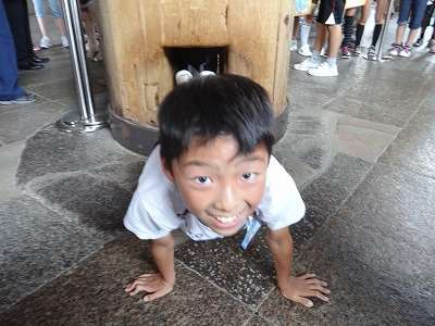 大仏殿の柱の一つに大きな穴が開いています。