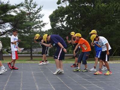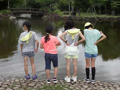 おにごっこや池を観察する子