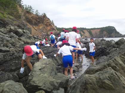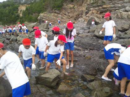 3日(水)第2日目,宮崎浜では,磯観察を行いました。タイドプールの中の生き物を観察しました。いろいろな生き物をみつけることができました。