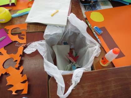 ぶら下げてごみを床に落とさないように工夫しました。