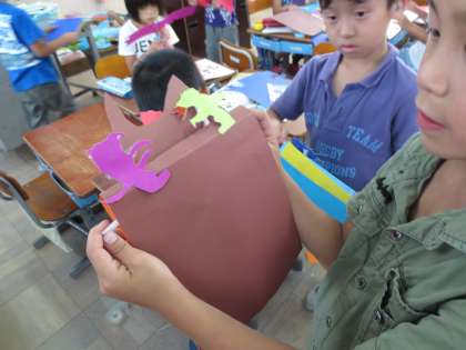 ストローで人形が動く仕組みを作りました。