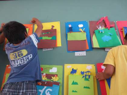 できた子から掲示もお手伝い。進んで行動する「キラリ」が