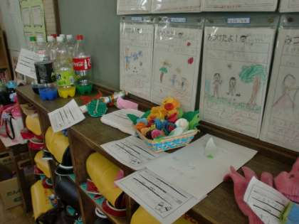 夏休みに取り組んだ自由研究を教室に展示しました。