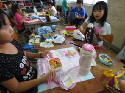 教室でお弁当を食べるのはとっても嬉しそうでした。