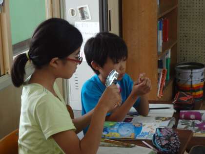今日はつぼみと開いてる花のめしべとおしべの違いを調べました♪