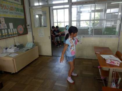 「教室の床のマス目1つ分が30cmちょっとだから,それをもとに予想できるね。」
