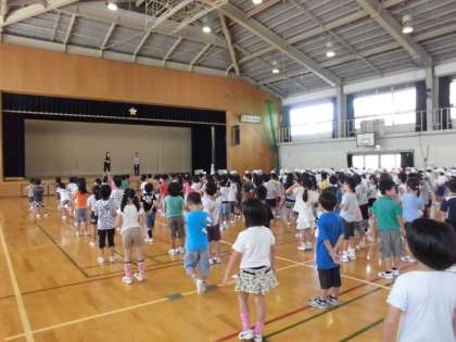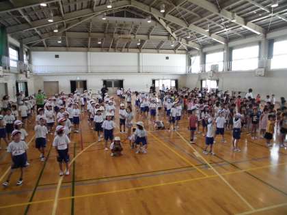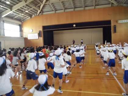 運動会の全校ダンスの練習を体育館で低学年の子ども達が練習していました☆本番までにしっかり踊れるように頑張りましょうね♪