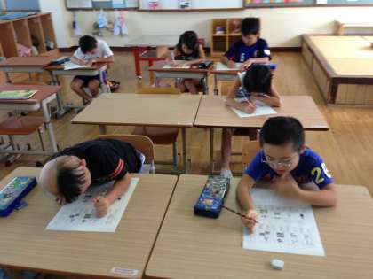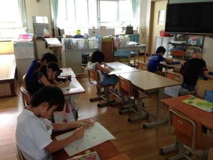 かしのみ学級の漢字検定の様子です。みんな真剣です。交流学習の人もいたので、2時間にわけておこないました。