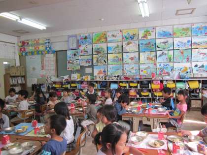 素敵な絵に囲まれ,給食も美味しく食べました。