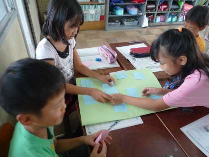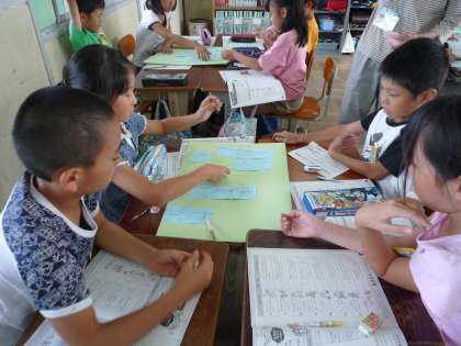 気候ネットワークの方が来てくださり,夏休み中のエコライフについての振り返りをして下さいました。そこから,グループワークをして自分たちにできる温暖化対策をそれぞれ考えていきました。学習が終わった後の感想では「電気をこまめに消す!」「エコ袋を使おう!」とすぐにできることから始めていこうと子どもたちも気合いが入っていました!