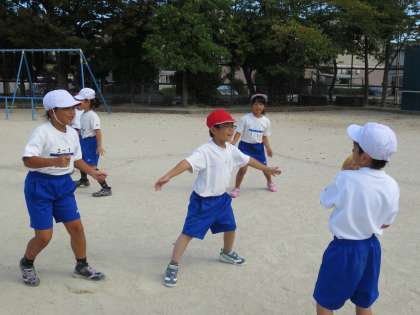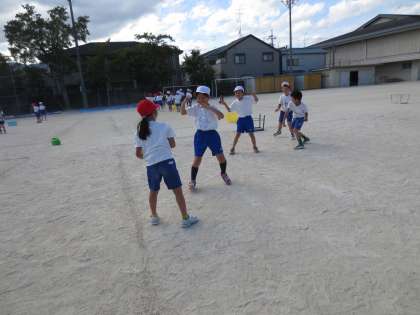 パスしてつなげ,シュートします。3人対3人なのでみんなが