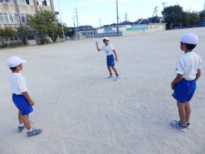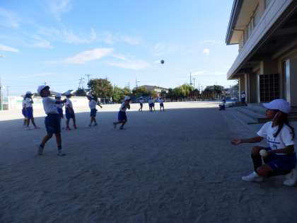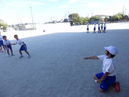ドッヂボールよりも小さいボールなので,扱いがむずかしかったですが,ボールをよく見てキャッチしていました。