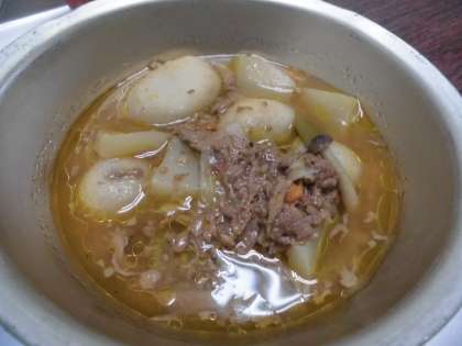 今日の給食では,新献立が出ました!里いもの「いも煮」というメニューです。煮汁でしっかりと煮込んであり,味がしっかりしていて美味しかったですよ〜☆