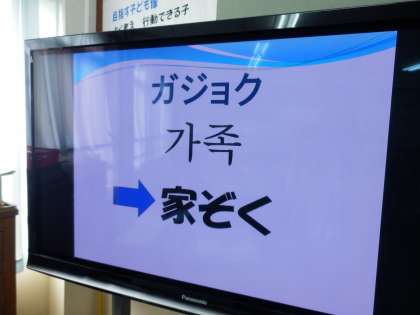ハングルで「ガジョク」は,日本語で「家族」のように,発音が似ている言葉がたくさんあり,子どもたちは驚いていました。